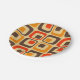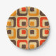Retro Squares Pattern - Red, Brown & Orange Paper Plate