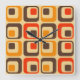 Retro Squares Pattern - Red, Brown & Orange Square Wall Clock