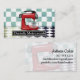 Baker, bakery, pastry chef business cards with retro stand mixer , bowl and beaters against a checked pattern kitchen backsplash and diamond countertop in watercolor style, perfect for artisan cakes, cookies, and other baked goods business.