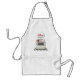 An apron featuring an illustration of a retro beige stove with a red pot sitting on top. Stove is on a black and white floor. Personalise the text at top.