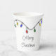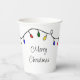 Festive Christmas party paper cups, with a retro string lights design and customisable script lettering. A great addition to your Seasonal party or celebration.