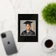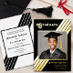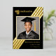 Celebrate your son’s high school, college, or university graduation in style with this bold and stylish retro photo black and gold foil graduation announcement card. Featuring a bold and striking combination of modern black and gold foil stripes, this card exudes sophistication and excitement for his big achievement. The front showcases a photo template with a gold foil frame and three eye-catching gold foil stripes, while the back highlights graduation details in sleek, modern black groovy typography with a matching black frame and stripes for a cohesive look. Designed by artist Catherine Sweetman, this grad announcement card is the perfect way to share his special moment with friends and family. The easy-to-use photo template allows you to personalise it effortlessly, making it an unforgettable keepsake for this milestone occasion.