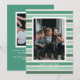 This simple but festive holiday card features space for a single photo over a retro inspired stripe pattern in shades of green on the front. The back of the card also has space for a single photo along with room for a short message.