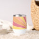 A colourful, retro stripe sunrise design with a pastel colours. The stripes are pastels - red, orange, yellow and a light blue. Add your name or monogram to make this a personal tumbler that will stand out amongst your friends. The name is a trendy script in white.