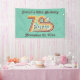 70's Party Banner featuring a retro style typography of "70's Party''. Designs include seventies inspired elements of blue, orange, mustard yellow, dark red and brown, stripes, and vintage texture. Includes a template to personally customise with event and date.