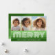 Retro Stripes in Olive Greens - Merry 3 Photo Holiday Card