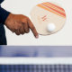 Cool Stylish Retro Stripes Orange beige Monogram Name Ping pong Paddle. Personalise this custom design with your own name and monogram initial, for summer lawn games with family and friends.