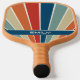 Create your own retro personalised pickleball paddle. Features abstract 70s vintage stripes design and custom name in a classic style typography.