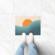 Abstract colourful retro style seascape illustration with blue sea waves and sun decoration at sunset for everybody who likes nature and waiting for summer adventures.
