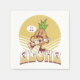 Grunge retro summer illustration with "Aloha" text design and cute pineapple playing ukulele at sunset decoration for summer lovers