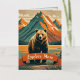 Retro-style bear cartoon and mountain range foil greeting card