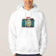 Cameras from the olden days had a great look to them and this design is a throw back to then of a retro style camera. The body of the camera is most;y green with a viewfinder on top and the shutter button to the right. This retro style camera design looks great on this mens hoodie. Perfect for yourself or as a gift