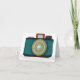 Cameras from the olden days had a great look to them and this design is a throw back to then of a retro style camera. The body of the camera is most;y green with a viewfinder on top and the shutter button to the right. This retro style camera design looks great on these note cards