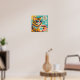 Retro-style cartoon cat wearing oversized sunglasses, holding a coffee cup. Bold 80s-inspired colours (teal, mustard, coral) with a halftone texture background with Playful