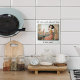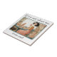 Retro-style ceramic tile with a tea-loving woman savouring her tea, two cats nearby, lace curtains, and a charming, sassy saying for tea enthusiasts.