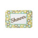 Step out of the shower in style with this fun bathmat that features a trendy retro-style circle pattern in colorful shades of aqua, green, orange, and brown accented with customizable text that says, "Shower." Modify the text with your own sentiment to create a one-of-a-kind gift for new homeowners, a unique accessory for your own home, or a fun addition to a dorm room shower.