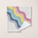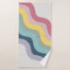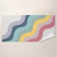 Abstract illustration of retro style colourful diagonal waves design in yellow, purple, blue, pink, turquoise and navy blue colours on pastel grey background for everybody who likes retro style design and retro style colour palette.