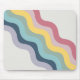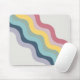 Abstract illustration of retro style colourful diagonal waves design in yellow, purple, blue, pink, turquoise and navy blue colours on pastel grey background for everybody who likes retro style design and retro style colour palette.