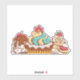 A decal with a row of delicious looking cupcakes with swirls and cherries and yummy frosting. Illustrated in a classic retro style. Colours include retro green, red, blue and cream.