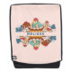 Personalised backpack with a row of delicious looking cupcakes with swirls and cherries and yummy frosting. Illustrated in a classic retro style. Colours include retro green, red, blue and cream.