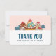 Party thank you card with a bunch of delicious looking cupcakes with swirls and cherries and yummy frosting. The illustration style gives it a classic retro feel. The backside has a message you can personalise.