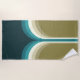 Retro style double arches geometrical pattern illustration with beige, green, blue, navy blue and turquoise stripes decoration