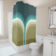 Retro style double arches geometrical pattern illustration with beige, green, blue, navy blue and turquoise stripes decoration