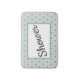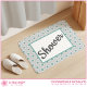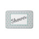 Step out of the shower in style with this fun bathmat that features a trendy retro-style circle pattern in soft shades of gray and aqua accented with customizable text that says, "Shower." Modify the text with your own sentiment to create a one-of-a-kind gift for new homeowners, a unique accessory for your own home, or a fun addition to a dorm room shower.