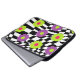 Protect your laptop in style with this colourful case with art by Buttercup's Clothing and Collectables. Cool case features a cool mod style pattern of purple , lime green , and hot pink flowers against a crooked black and white chequered background. Available in various sizes.