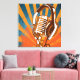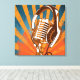 Canvas wrapped print with a retro style, vintage microphone. Background is done in orange and blue starburst pattern. This would be the perfect gift for a music lover in his/her studio or man cave or even in a living room. Any music lover would surely appreciate and treasure this print!