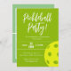 Retro Style Neon Lime Themed Pickleball Birthday Invitation