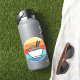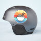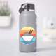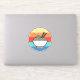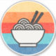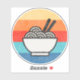 Retro style ramen illustration with noodles and chopsticks on a colourful retro style sunset background in yellow, orange, red, turquoise and blue colours
