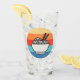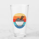 Retro style ramen illustration with noodles and chopsticks on a colourful retro style sunset background in yellow, orange, red, turquoise and blue colours