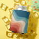 Retro style waves geometrical pattern illustration with red, orange, blue and turquoise stripes decoration