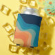 Retro style waves geometrical pattern illustration with yellow, orange, blue, navy blue and turquoise stripes decoration