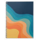 Retro style waves geometrical pattern illustration with yellow, orange, blue, navy blue and turquoise stripes decoration