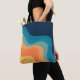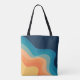 Retro style waves geometrical pattern illustration with yellow, orange, blue, navy blue and turquoise stripes decoration