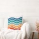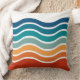 A stylish look for your home, this colourful design has retro inspired wavy stripes in a happy cheerful colour palette of red, orange, mustard yellow, turquoise and blue with white background. The look is positive and energetic! This pillow is a versatile choice for any room in your home.
