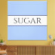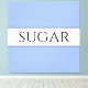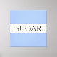 This fun, nostalgic design features text inside a wide white centre stripe highlighted with black pinstripes against light powder blue background stripes. The SUGAR text can be personalised.