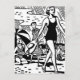 Retro Summer Images! a black and white Graphic of a cute Retro Beach Scene, showing people in fashionable swimsuits