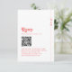 Simplify your RSVP process with the Chic Retro Summer Bright Hot Pink Wedding QR Code RSVP Card. This vibrant design features a bold hot pink background paired with retro-inspired typography, exuding fun summer vibes. The included QR code directs guests to RSVP online, blending modern convenience with timeless charm. Perfect for couples looking to add a stylish and practical touch to their wedding stationery.