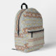 Backpack all over print cut sew style storage bag printed with Retro Summer Geometric Colour Block Pattern Design graphic art Illustration by TheFabricSeal print on demand shop at Zazzle.com #ZazzleMade ©️Original. https://www.zazzle.com/store/thefabricseal Artistically illustrated contemporary mid century artwork design with classic old school colours for a summer cool and warm neutral pale foundation earth tone stone colour scheme including beige, brown, cream, dark and light grey, deli mustard yellow, mango orange, sage leaf green, terracotta, turquoise and ivory white. Print cut and sew style lightweight and durable, our custom all-over-print Backpack is just what you need. The spacious interior is ideal for indoor and outdoor activities, travel, school, gym, or any mobile storage need. These are great gifts for family, friends and yourself of course. Click on Personalise It and then use the Edit The Design Tool for more customisation options if needed including transferring this design to other products from Zazzle. Thank you very much for choosing our online store. We appreciate your support. Enjoy your shopping experience. Cindy and Jeff