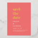 This retro summer gold foil hot pink save the date is perfect for a colourful wedding. The unique modern vintage design features vibrant bold hot pink and white typography with luxurious pressed gold foil and fun groovy vibes.