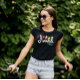 Kiwis wear all black as the t shirt is with Green lettering to match the environment and yellow for joy and purple thistle to match my hair.