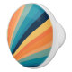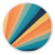 Retro style sun rays geometric pattern illustration with yellow, orange, blue and turquoise stripes decoration