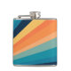 Retro style sun rays geometric pattern illustration with yellow, orange, blue and turquoise stripes decoration