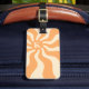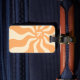 Luggage tag featuring a retro, pale orange sun with radiating rays and your monogram initial.
