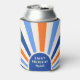 Retro Sunburst Arch Typography Birthday Blue Can Cooler