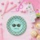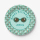 This paper plate is decorated with a pattern inspired by summertime at the beach. It features retro style sunglasses and surfboards in cool colours of teal and green with orange. Text is easily personalised for a beach party as well as a birthday or other event.