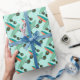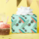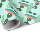This pattern is inspired by summertime at the beach. It features retro style sunglasses and surfboards in cool colours of teal and green with orange.